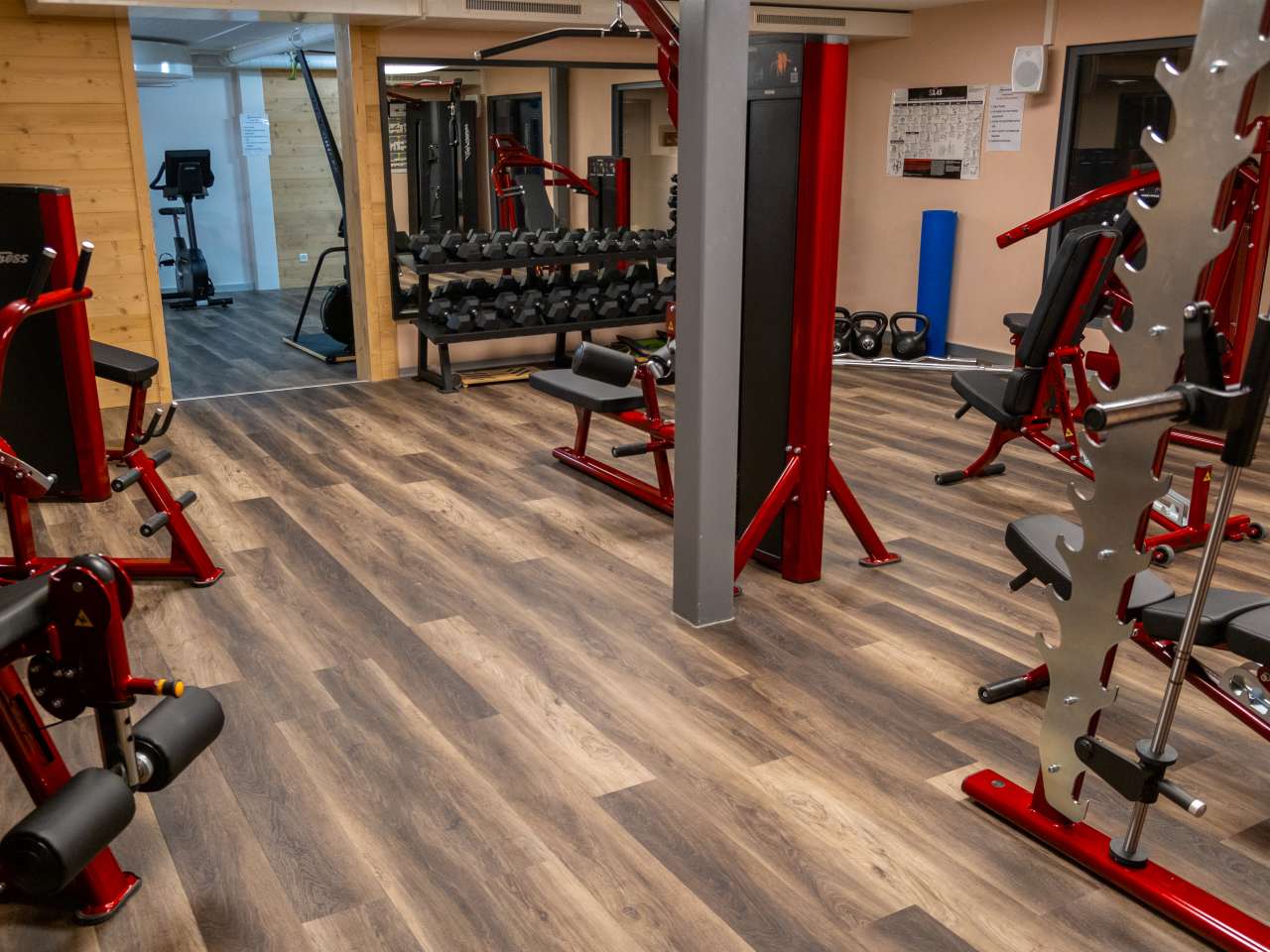 Der Fitnessraum ist mit modernen Geräten der Firma Life Fitness ausgerüstet.