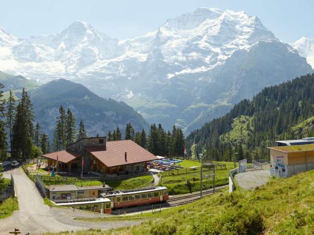 Inmitten der weitgehend unberührten Natur ist die familienfreundliche Gaststätte mit ihrer Sonnenterrasse und dem Selbstbedienungsrestaurant eine Oase der Entspannung für Wanderinnen und Wanderer, Mountainbiker*innen oder Wintersportlern*innen. Winteregg ist der einzige Zwischenhalt auf der Bahnstrecke zwischen der Grütschalp und Mürren. Nebst dem Restaurant gibt es hier auch eine Alpkäserei, welche im Sommer verschiedene Käsesorten verkauft. Ein Highlight ist der «Chästeilet», bei welchem Ende Sommer jeweils der Käse verteilt wird, der produziert wurde. Ein Volksfest mit langjähriger Tradition in der ganzen Schweiz. In den Wintermonaten trifft man in Winteregg vor allem Skifahrer*innen an. An den Liften Winteregg, Maulerhubel und Allmiboden liegen blaue und rote Pisten, eine Slalomstrecke und der beliebte Skyline Snowpark. Auch Winterwanderinnen und -wanderer kommen hier auf ihre Kosten, denn der Winterwanderweg führt am Restaurant vorbei. Kuschle dich in die warmen Decken und wärme dich mit einem heissen Getränk auf. Winteregg ist sowohl im Sommer, wie auch im Winter zu Fuss erreichbar. Ab Mürren dauert der einfach Spaziergang ca. 40 Minuten. Ab Grütschalp sind es ca. 50 Minuten.