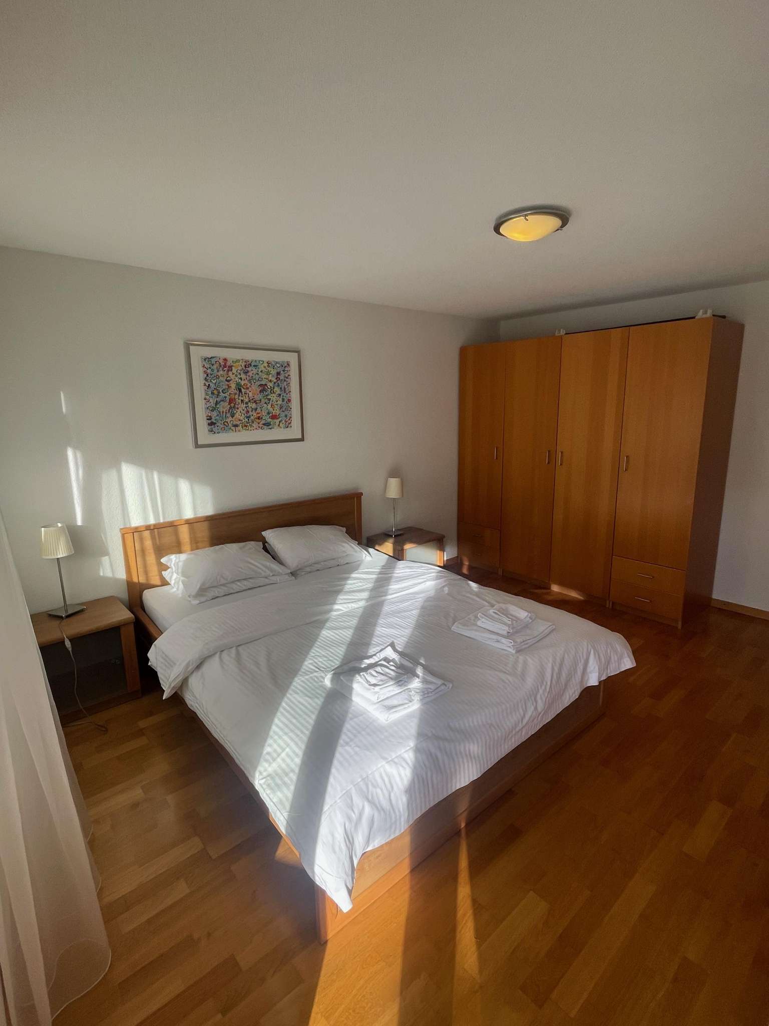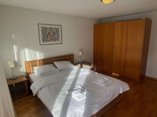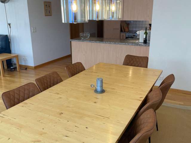 Entdecken Sie den perfekten Rückzugsort für Ihren nächsten Urlaub in unserem geräumigen 4-Zimmer-Apartment mit luxuriösen 100 m² Wohnfläche. Genießen Sie das atemberaubende Panorama bequem von Ihrem Wohnzimmer aus, dessen Balkon einen unverbauten Blick auf die majestätischen Berge Eiger, Mönch und Jungfrau bietet. Diese Wohnung wurde ganz im Zeichen Ihrer Entspannung und Ihres Genusses gestaltet und verspricht einen unvergesslichen Urlaub inmitten der atemberaubenden Schönheit der Natur. Treten Sie ein und entdecken Sie eine sorgfältig gestaltete Innenausstattung, die all Ihren Bedürfnissen gerecht wird. Drei gemütliche Schlafzimmer laden zu erholsamen Nächten ein: Zwei sind mit Doppelbetten ausgestattet, das dritte mit zwei Etagenbetten – ideal für Familien oder Gruppen. Die Wohnung verfügt über zwei gut ausgestattete Badezimmer, eines mit Dusche und das andere mit Badewanne und Dusche. Das Herzstück der Wohnung ist eine moderne Küche, komplett ausgestattet mit Kühlschrank, Backofen, Kochfeld, Geschirrspüler und Nespresso-Maschine sowie allem notwendigen Geschirr und Besteck. Angrenzend an die Küche erwartet Sie ein geräumiger Essbereich mit einem großen Holztisch und acht Stühlen für Ihre Zusammenkünfte, während der Wohnbereich bequeme Möbel und einen wärmenden Ofen für kühle Abende bietet. Draußen wird der Balkon zu Ihrem privaten Aussichtspunkt, komplett mit Tisch und Stühlen für Mahlzeiten im Freien oder einfach zum Genießen der spektakulären Aussicht bei schönem Wetter. Diese Oase im Freien sorgt dafür, dass Ihre Verbindung zur majestätischen Umgebung nur einen Schritt entfernt ist und bietet die perfekte Kulisse.