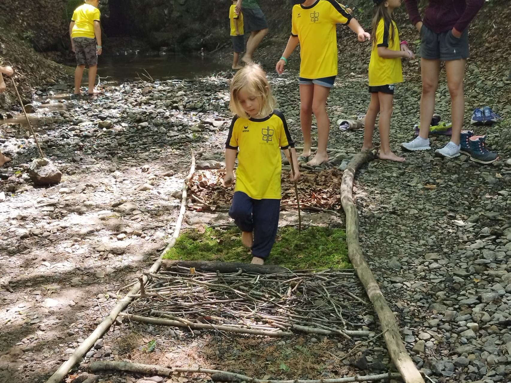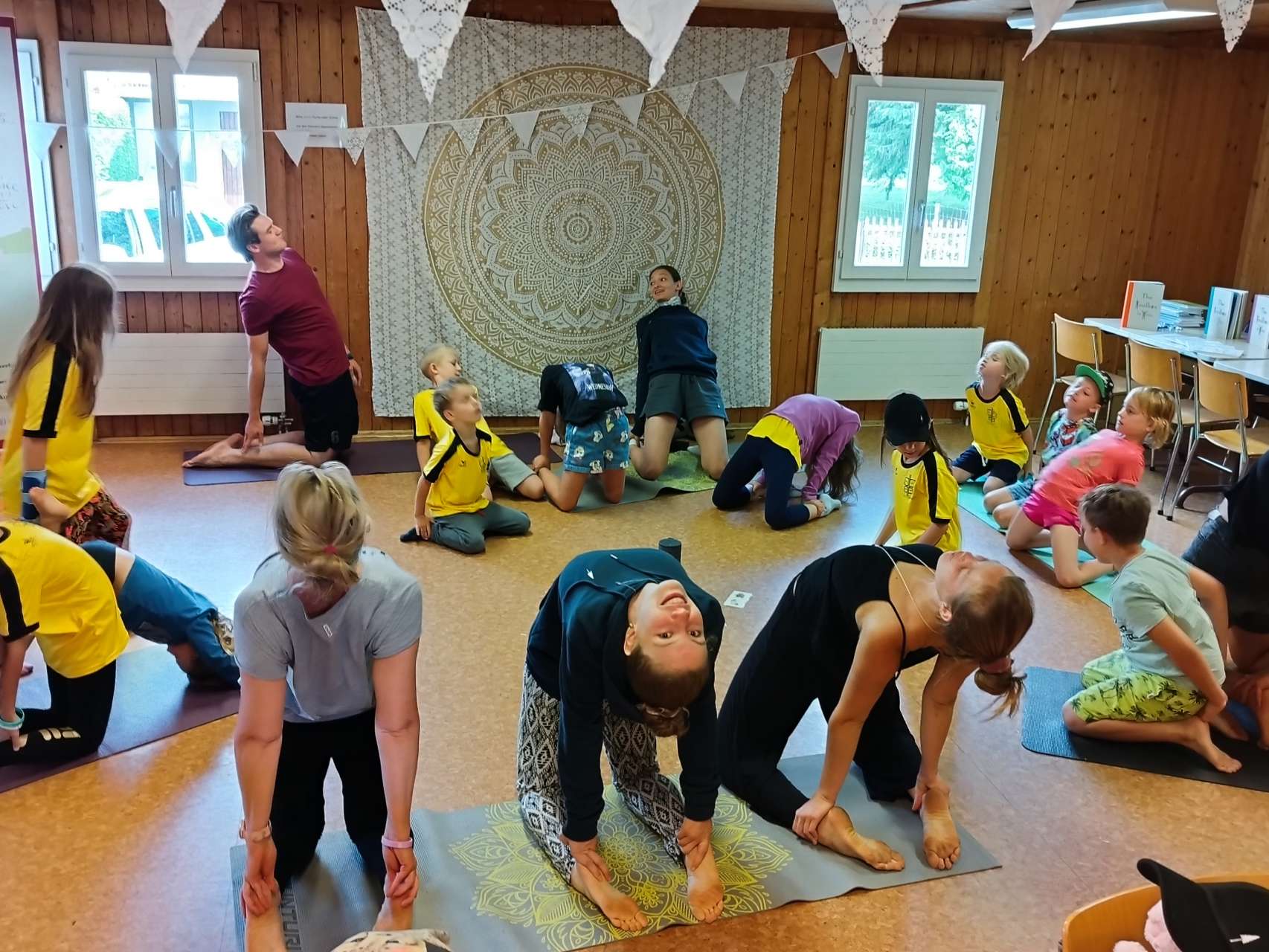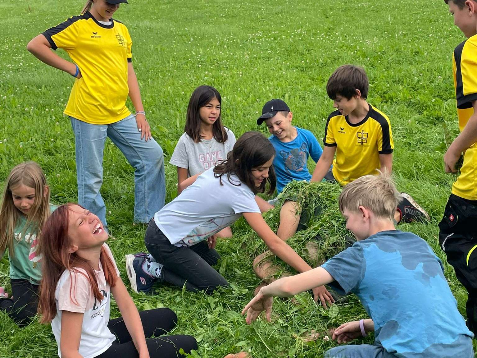 Das Outdoor & Sport Camp Mürren findet im Juli im Sportchalet statt. Gleich nebenan befindet sich das Sportzentrum – mit einer Dreifachturnhalle, einem Schwimmbad und Aussenplätzen, so etwa einem Fussballfeld. Auch Pingpong-Tische und eine Slackline sind vorhanden. Bei Kindern und Jugendlichen ebenfalls beliebt: Der Pumptrack für Skater*innen, Biker*innen und Scooterfahrer*innen. Oder solche, die es gerne werden möchten. Auf dem Tagesprogramm des Camps stehen nebst Sport aber auch Kinderyoga, Meditation, abenteuerreiche Aktivitäten in der Natur und Achtsamkeitsübungen. Die Camp-Teilnehmer*innen sollen sich bewusst mit ihren Emotionen und Gedanken auseinandersetzen und Mitgefühl für sich selbst, ihre Mitmenschen und die Umwelt entwickeln. Täglich sind die Kids stundenlang in der Natur unterwegs, auf Wanderungen in und um Mürren – und das bei (fast) jeder Witterung. Mit etwas Geduld können sie ein Wildtier beobachten. Oder sie geniessen einfach mal die Ruhe, beobachten die Sterne, machen ein Feuer im Wald.