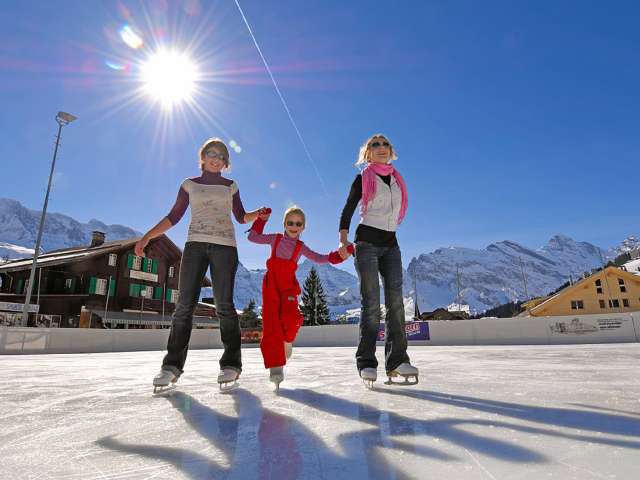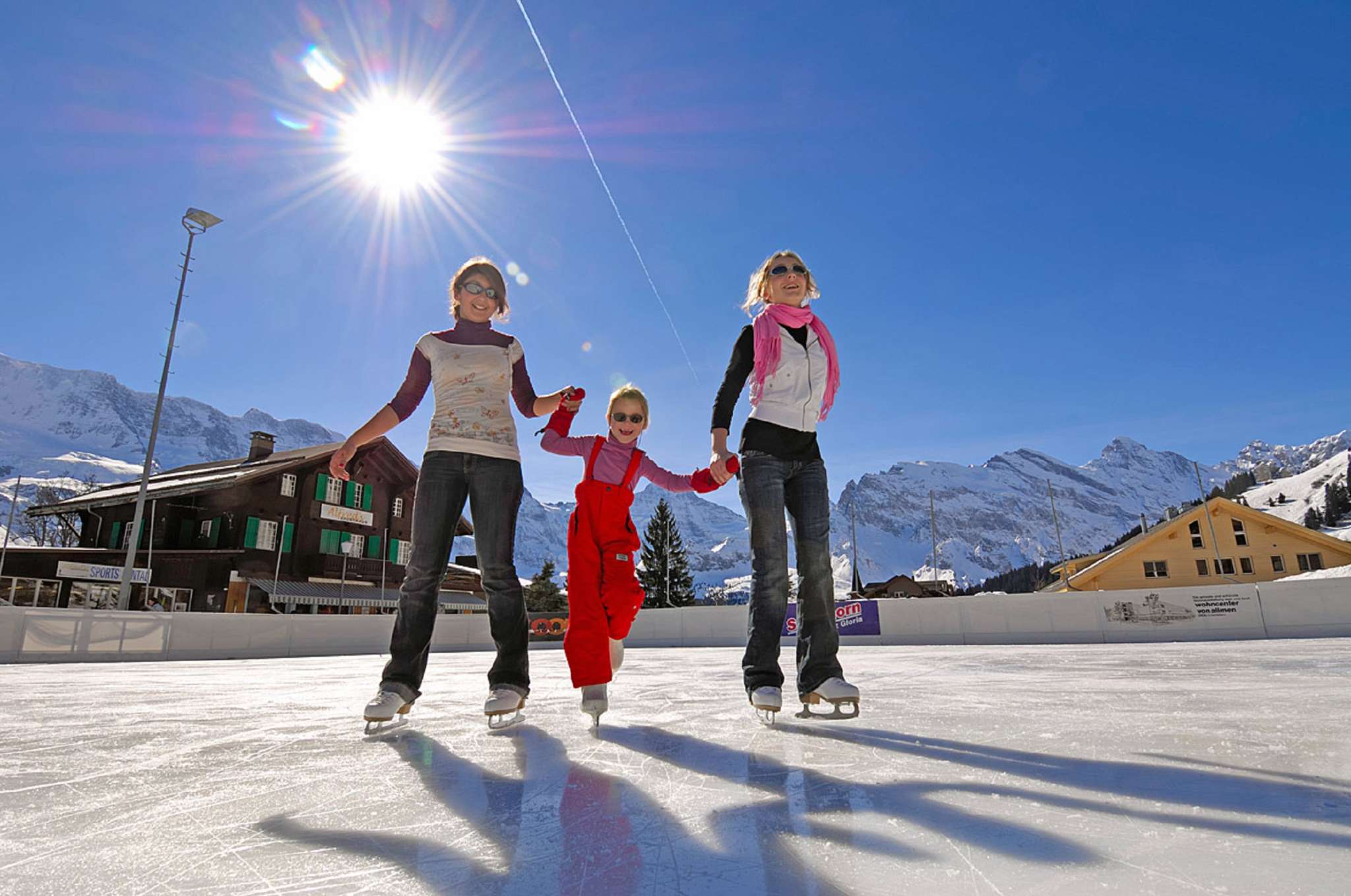 The open-air artificial ice rink impresses with a wonderful mountain panorama in the background. Whether ice skating, ice hockey, curling or ice disco - there's always something going on here.