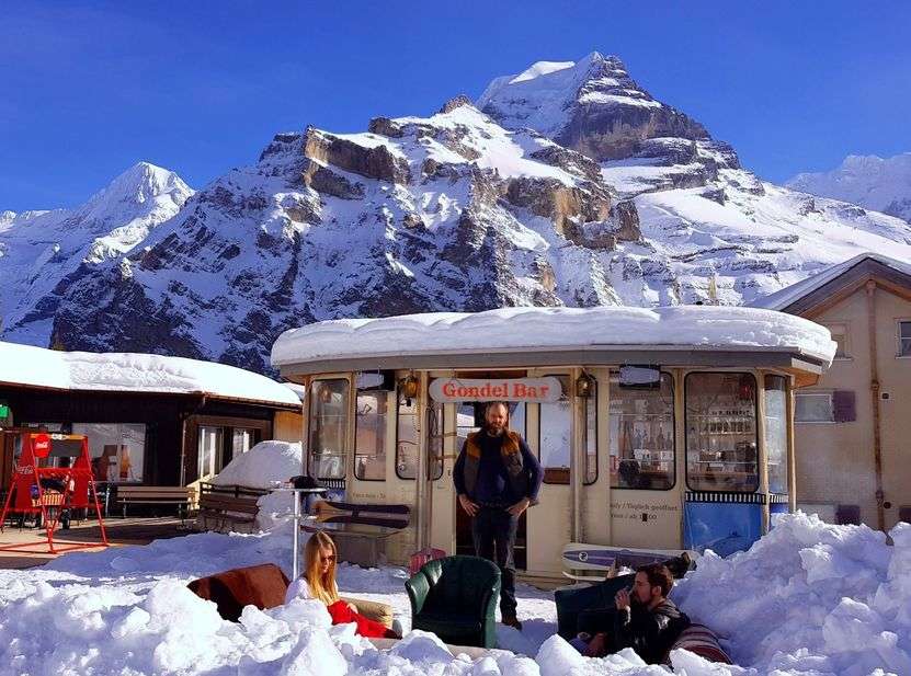 An aperitif is always part of a day's skiing. Right at the end of the ski slope - behind the Hotel Jungfrau - is the gondola bar with a cosy atmosphere and lots of charm.