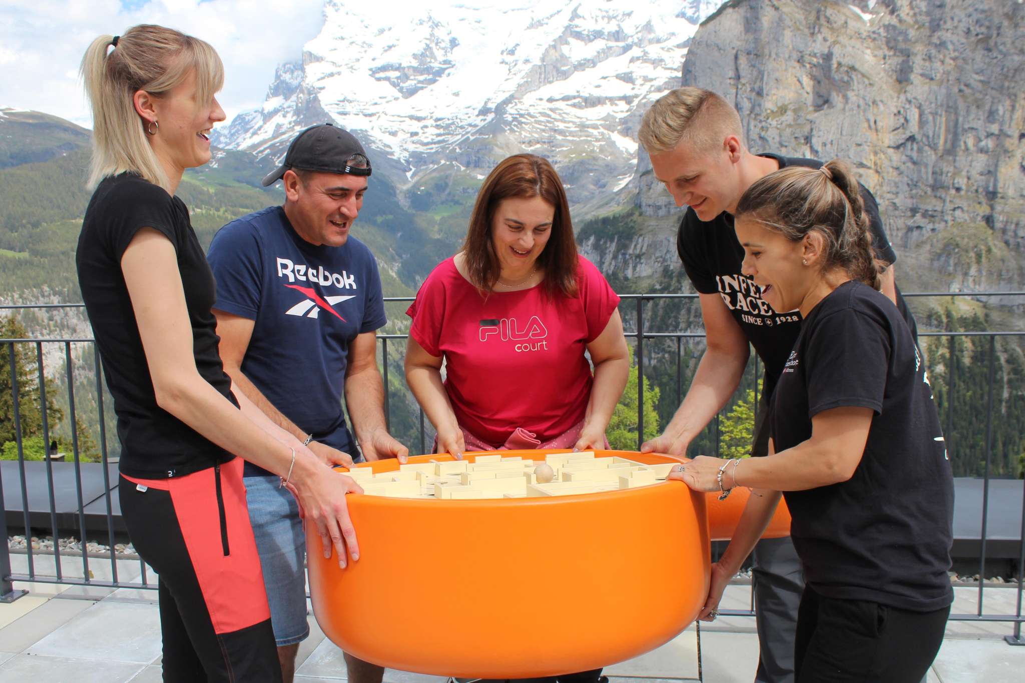 Test your skills with the cheese fondue labyrinth, solve the coffee froth puzzle, master the Eiger tour with the climbing figures, play ibex hockey, win during the Schilthorn card game, score goals at the XXL table football or prove your ability with icestock sport.
