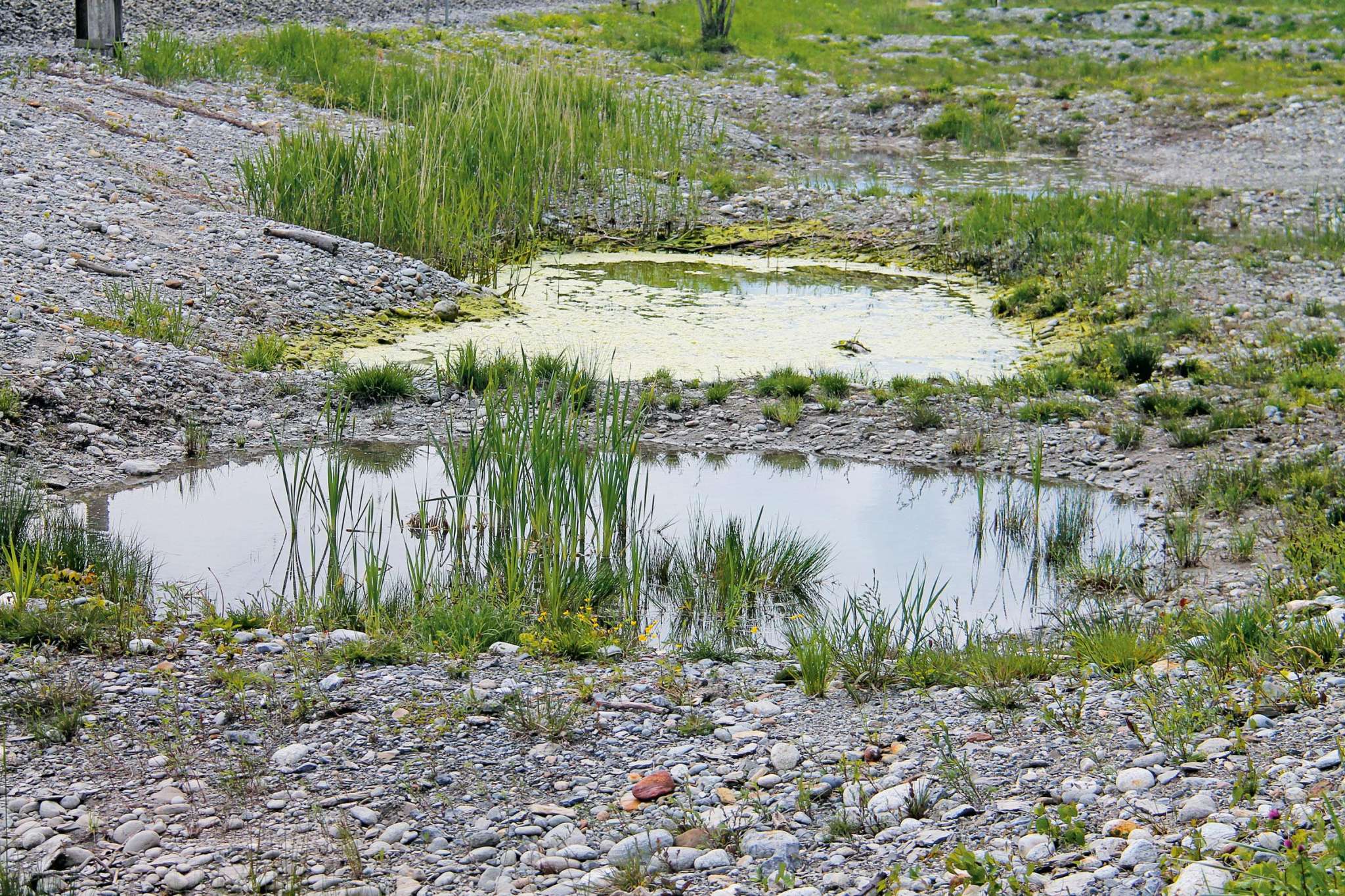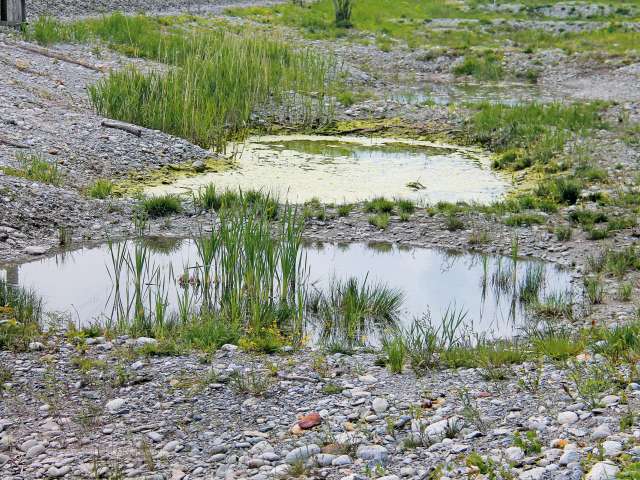 Floodplains are fascinating areas of streams, rivers and ponds that are periodically flooded by water. During floods, a floodplain is inundated so that new gravelly areas are constantly being created and new habitats for pioneering plants and animals are constantly being created. The Funtenensee lake, the pools on the gravelly pioneer areas and the wet forest are important habitats for the protected amphibians and other animals that can be discovered here.
