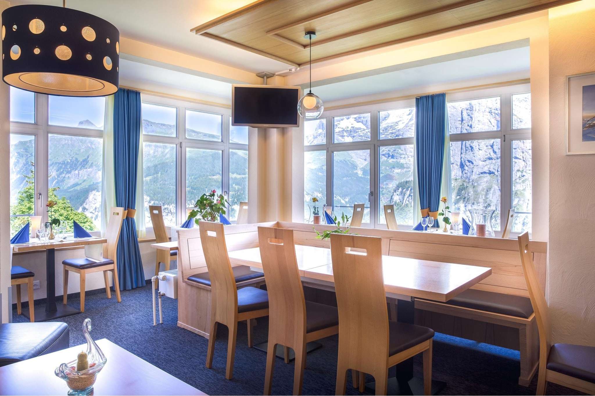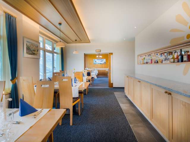 The restaurant at the Hotel Alpina has a spacious dining room where numerous national and international dishes are served. The delicacies can be savoured thanks to the large panoramic windows with a direct view of the Eiger, Mönch and Jungfrau.