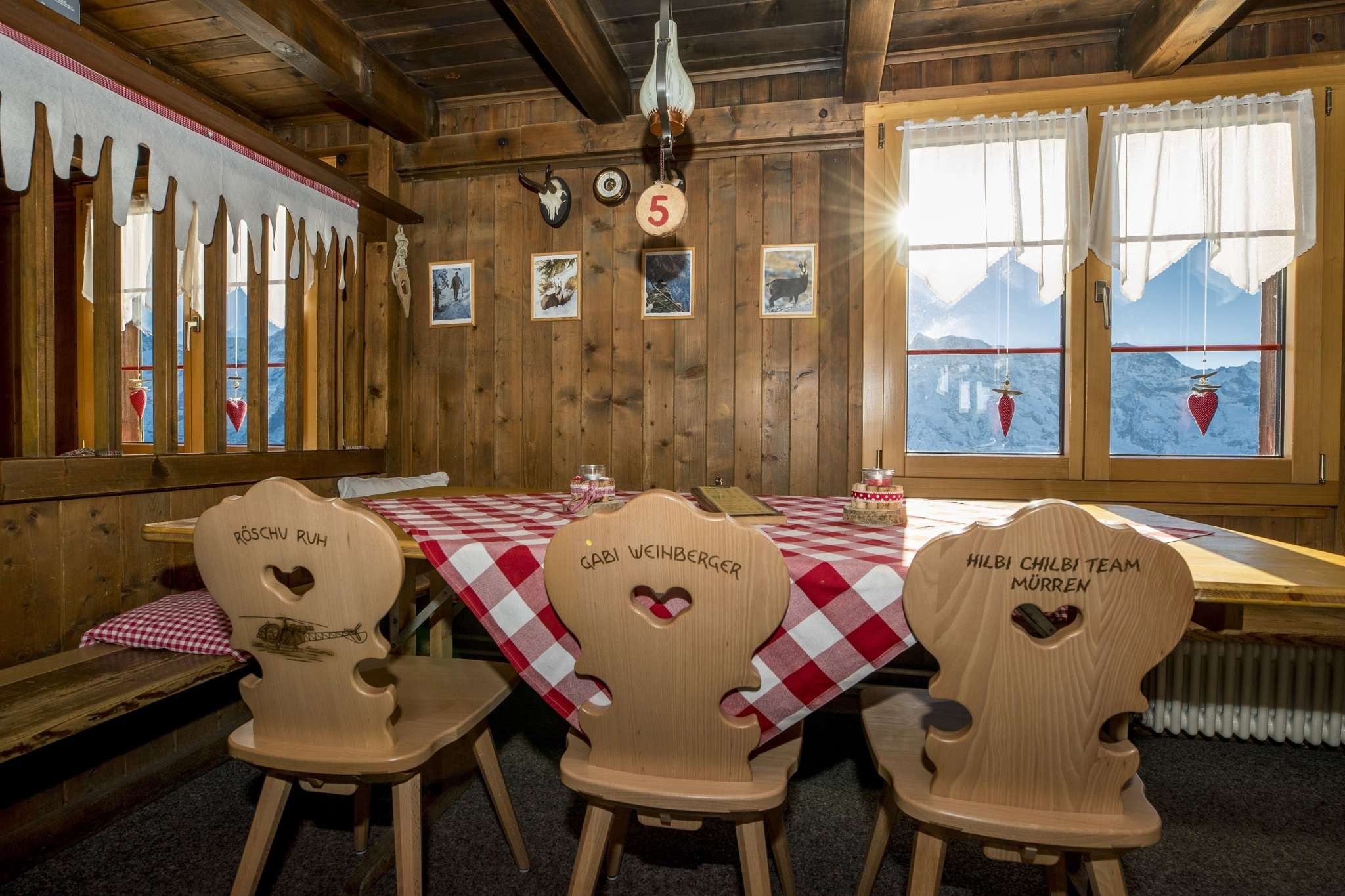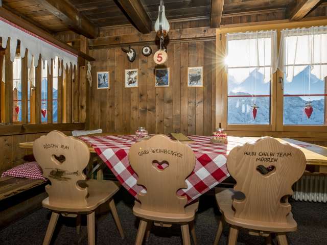 In winter, you can reach the Schilthornhütte within a few minutes on the Muttleren or Kandahar chairlift. It can be reached on foot from Birg station in around 40 minutes (downhill). Or from Mürren via Kanonenrohr in around 2 hours 15 minutes (uphill).