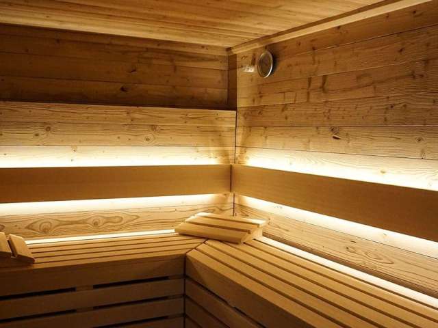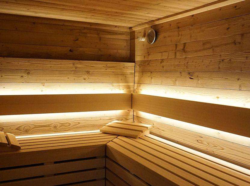 Our sauna area consists of a Finnish sauna made of split wood (90°C), a sanarium made of old wood (65°C) and a steam bath with 100% humidity at 50°C.