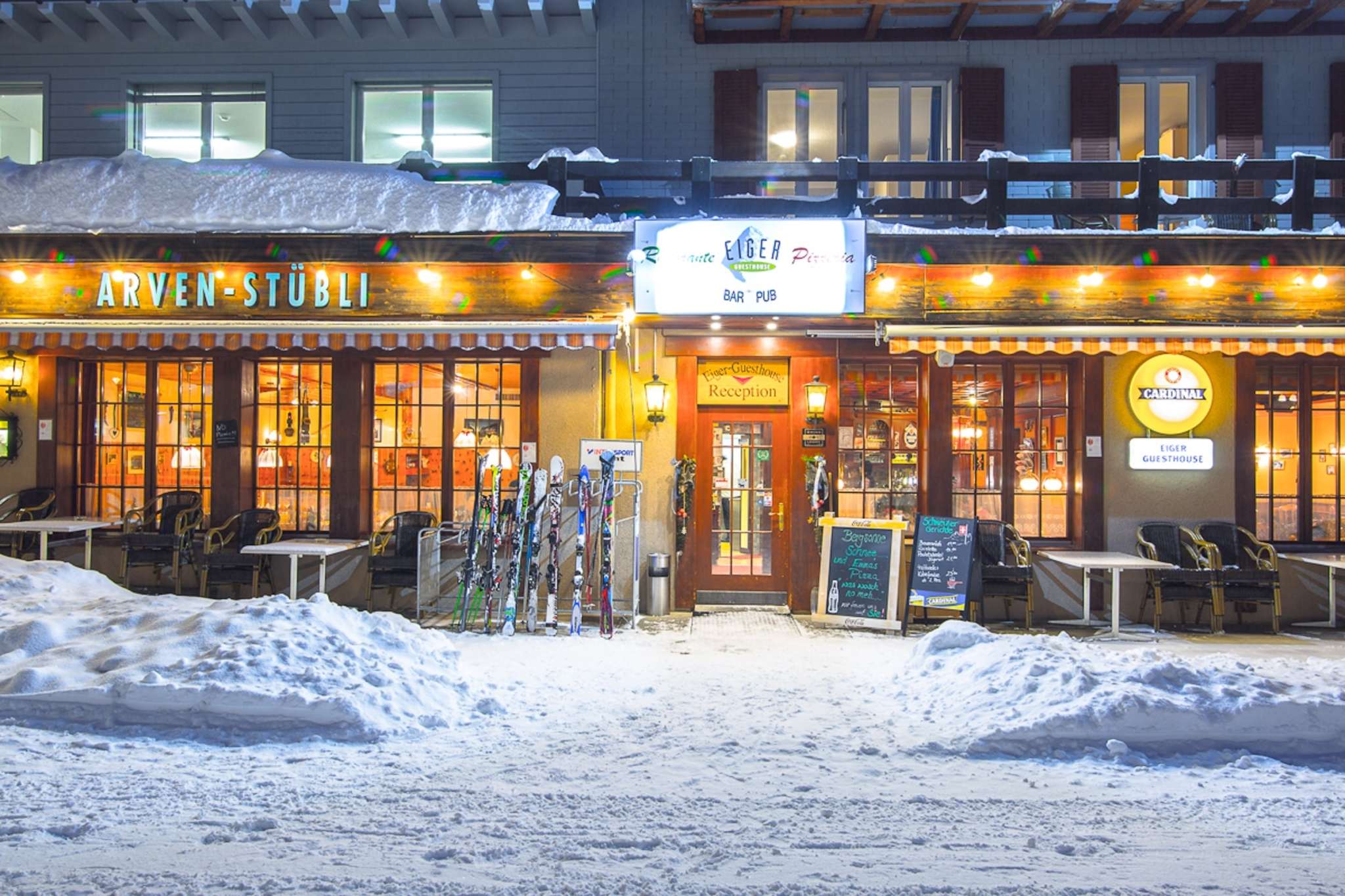 Le restaurant dans le soi-disant Arvenstübli fait partie de l'Eiger Guesthouse. Il offre aux clients une expérience de repas agréable et simple. On y sert surtout des délices italiens comme la pizza, les pâtes et autres. L'aménagement avec table de billard et bar fait du restaurant un véritable pub. De plus, l'Arvenstübli propose un service de plats à emporter - pour que tu puisses aussi profiter de ton repas à la maison.