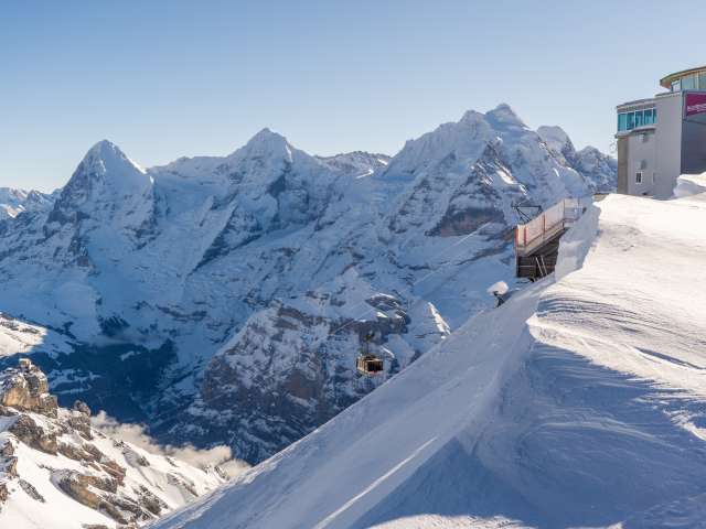 Le bistro avec une grande terrasse ensoleillée ainsi que deux attractions avec une vue imprenable sur l'Eiger, le Mönch et la Jungfrau t'attendent ici.