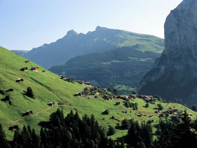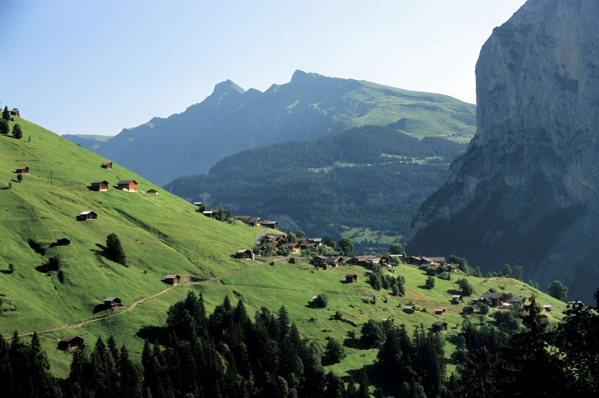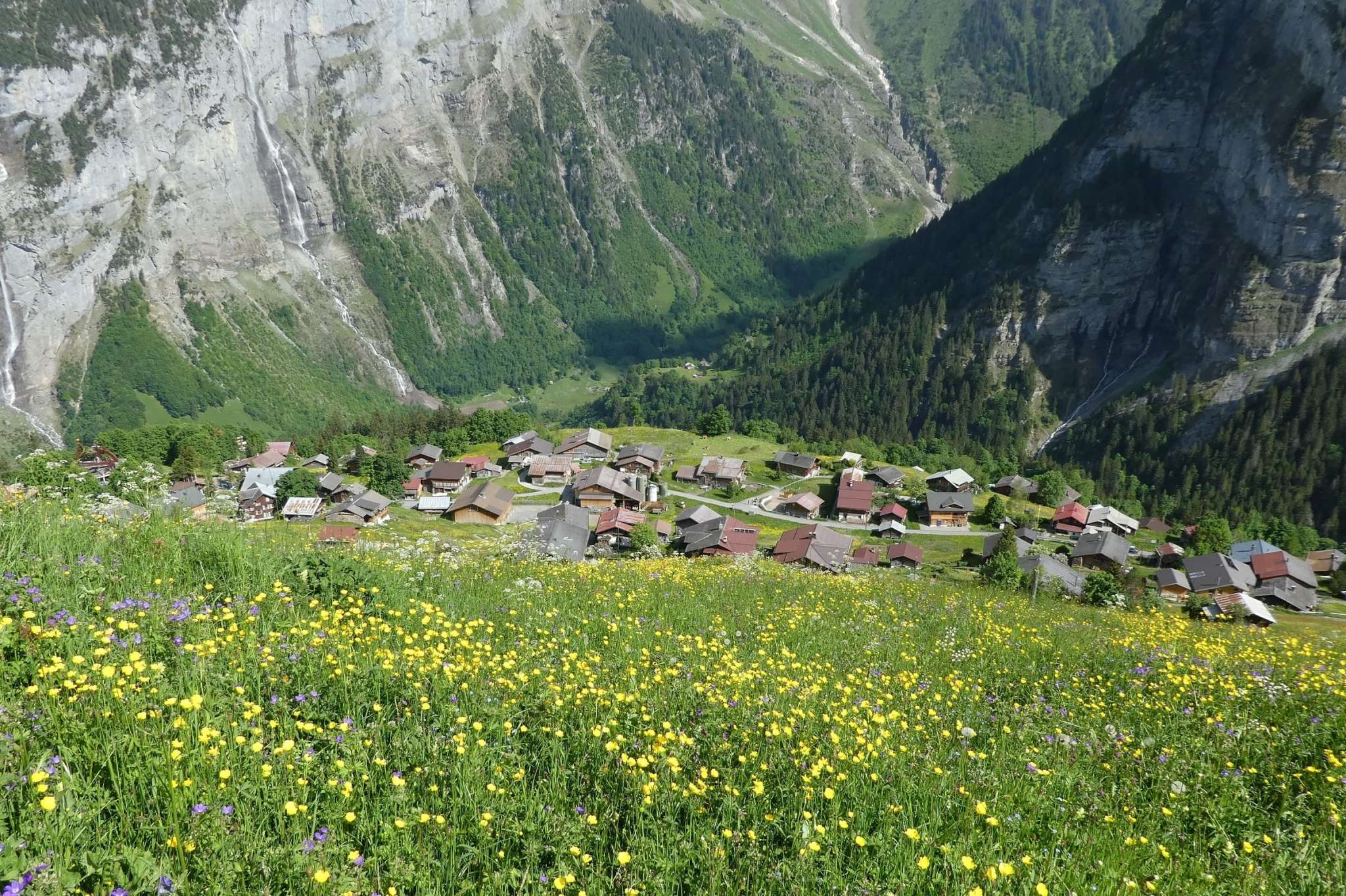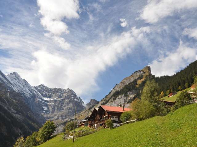 Gimmelwald est un village de paysans de montagne très authentiquement préservé qui compte une centaine d'habitants. Ils vivent ici en contact étroit avec la nature et les animaux. L'image du village se caractérise par des chalets décorés de fleurs devant le massif montagneux de la Jungfrau, haut de quatre mille mètres.