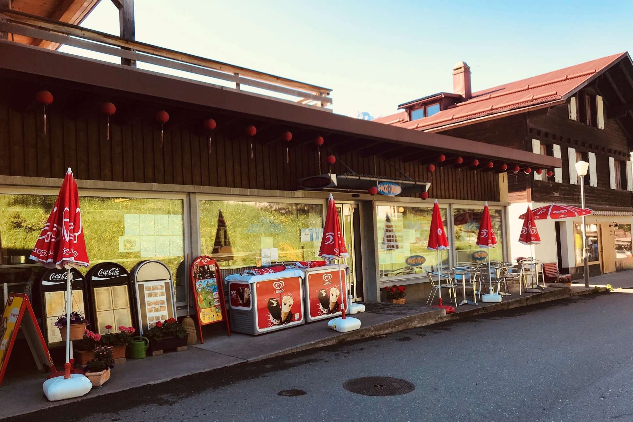 Le restaurant se trouve dans la rue inférieure du village, à peu près au milieu de Mürren.