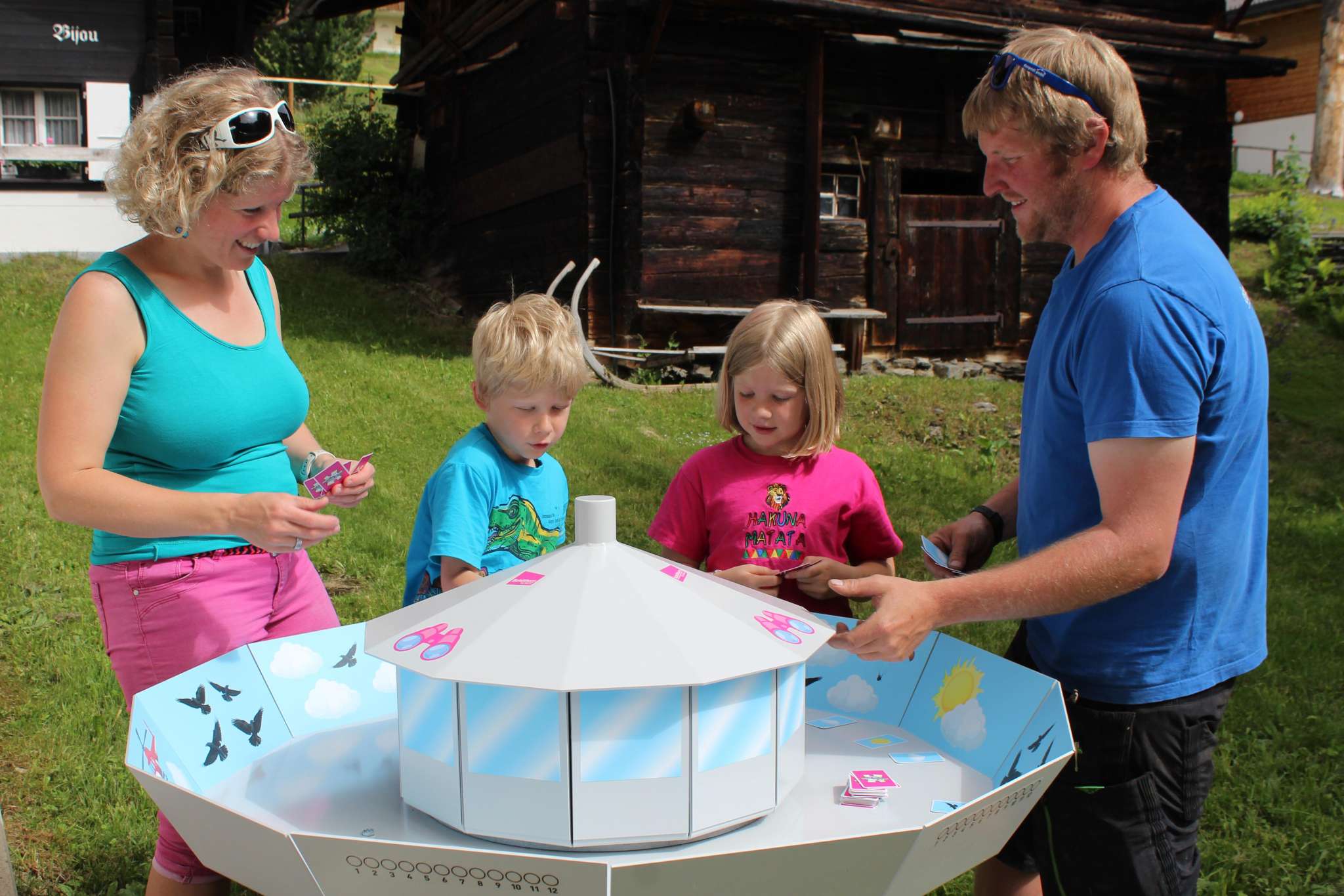Découvrez le village en vous amusant ! Testez votre habileté dans le labyrinthe de la fondue au fromage, résolvez le casse-tête de la mousse de café, relevez le défi de l'Eiger-Tour, jouez au hockey des bouquetins, remportez la partie de cartes du Schilthorn, marquez des buts au baby-foot XXL ou montrez votre talent au curling. De nombreux jeux exceptionnels vous attendent!