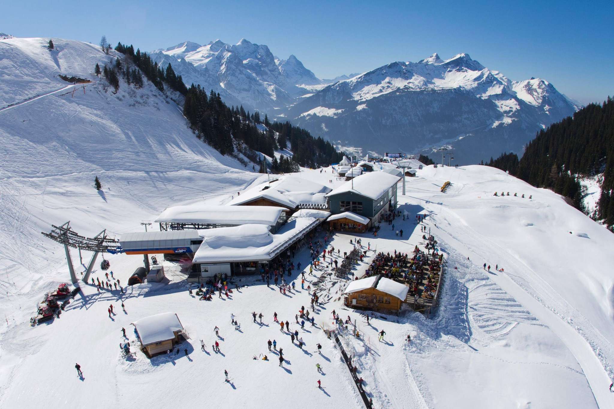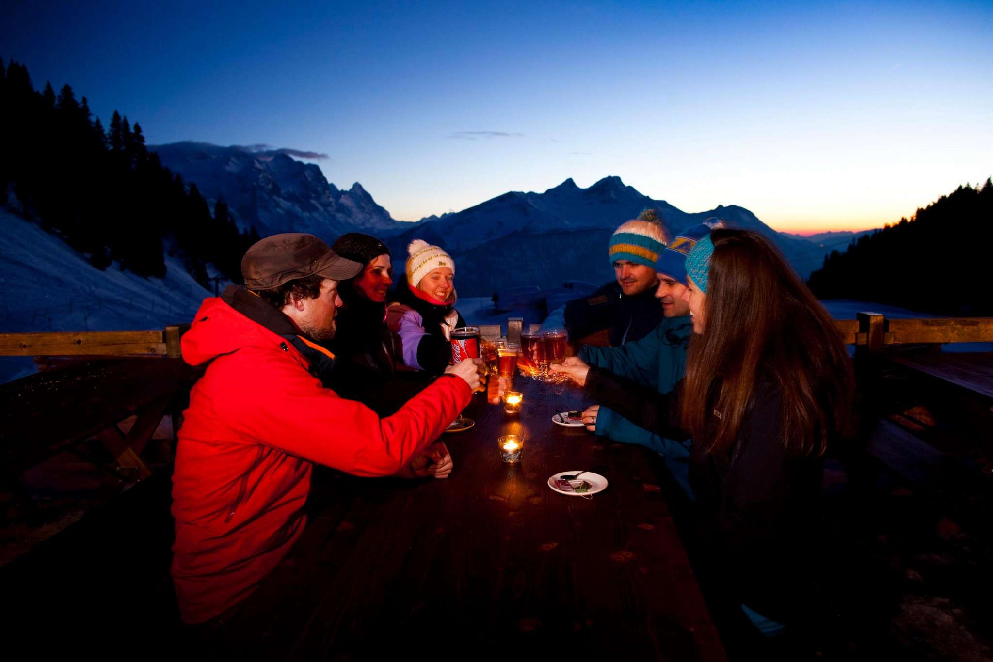 Le restaurant alpin Mägisalp est aussi un lieu d'événement unique pour les fêtes de mariage, les événements d'entreprise ou les fêtes de famille au milieu des montagnes. Lors d'un événement en soirée, découvre le coucher de soleil inoubliable et le trajet en train à travers la nuit étoilée. Tu seras volontiers aidé pour l'organisation.