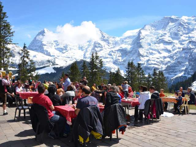 Le restaurant alpin Winteregg, construit en 1989, offre une oasis de bien-être pour toute la famille sur sa terrasse ensoleillée, en hiver comme en été. Au milieu d'une nature intacte, la gastronomie en self-service est ici une tradition et offre une grande variété de plats. Tu trouveras de la place sur la terrasse comme à l'intérieur du restaurant. D'ici, tu as la meilleure vue sur les trois sommets Eiger, Mönch et Jungfrau. L'aire de jeux pour enfants près du restaurant est placée sous le signe des Alpes et invite les familles à une excursion riche en émotions. En été, les sentiers de randonnée et en hiver les pistes de ski se rejoignent ici. Au-dessus de la maison se trouve le téléski de Winteregg.