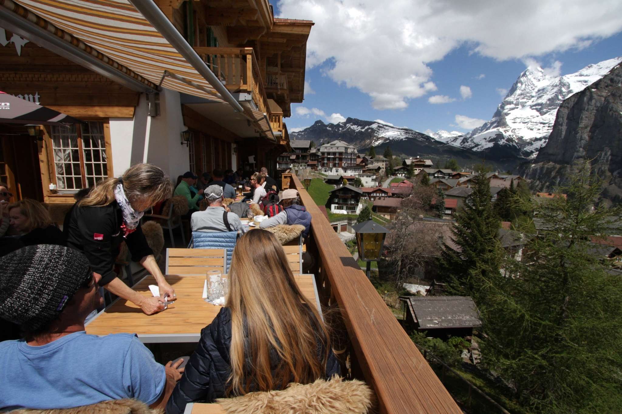 Le restaurant se trouve juste devant la station Mürren du téléphérique Schilthorn - l'endroit idéal pour faire une pause pendant une journée de randonnée ou de ski.