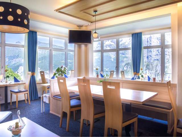 Le restaurant de l'hôtel Alpina dispose d'une salle à manger spacieuse dans laquelle sont servis de nombreux plats nationaux et internationaux. Les délices peuvent être dégustés avec une vue directe sur l'Eiger, le Mönch et la Jungfrau grâce aux grandes fenêtres panoramiques.
