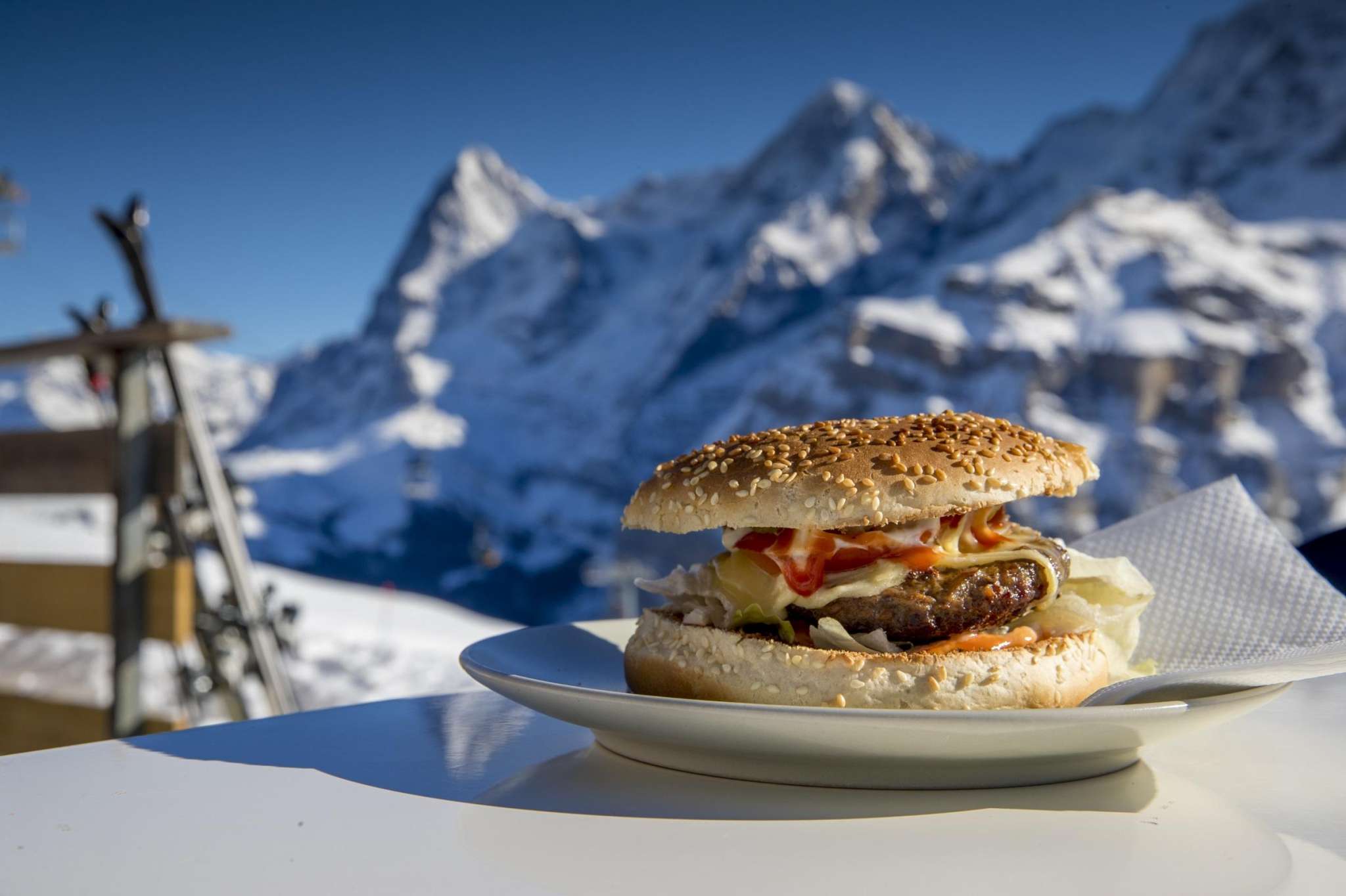 Le Schiltgrathüsi est un petit refuge situé à 2145 mètres d'altitude dans le domaine skiable de Mürren-Schilthorn. Ce qui est unique, c'est la terrasse, peut-être l'endroit le plus ensoleillé du domaine skiable - avec une vue panoramique sur les Alpes de l'Oberland bernois. Ici, même en hiver, les sensations estivales sont au rendez-vous.