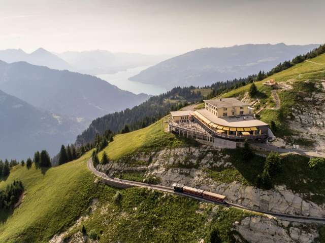 Le train à crémaillère franchit 1420 mètres de dénivelé lors de son trajet de 7,255 km de Wilderswil à la Schynige Platte.