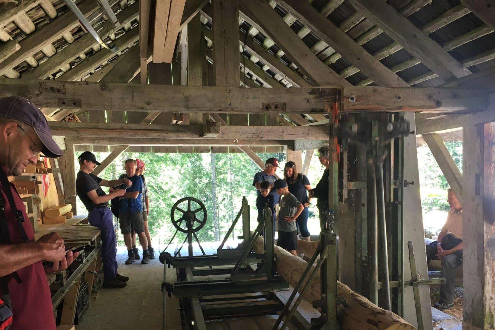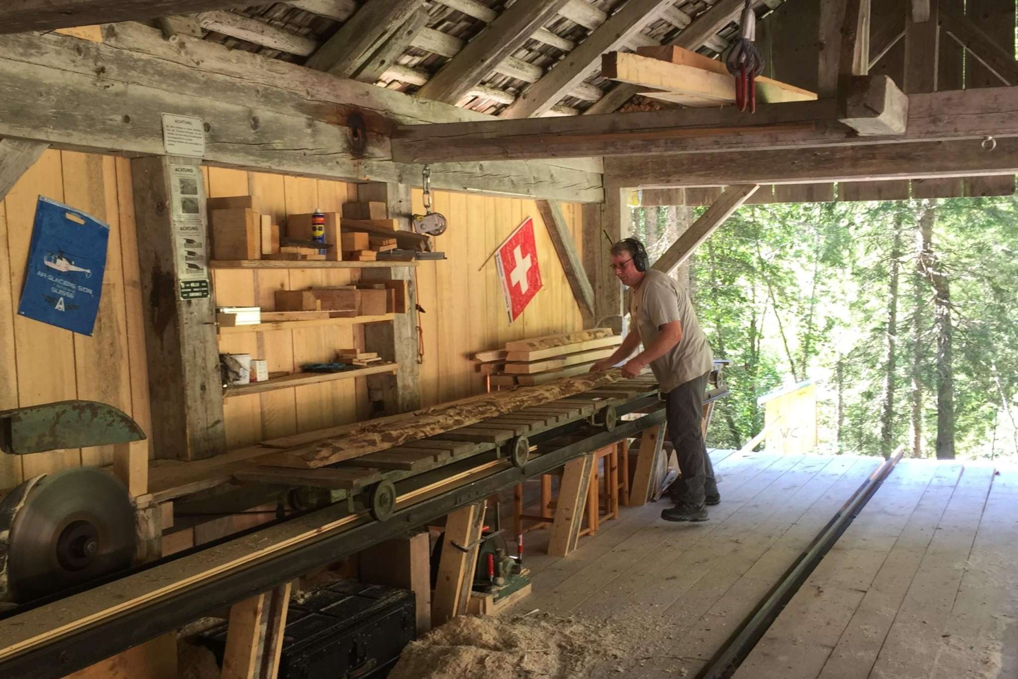 La force de l'eau à l'état pur ! La visite de la Sagi est surtout recommandée en compagnie de Werner Feuz, l'expert en sciage. Il montre comment l'eau est retenue et dirigée vers l'installation, comment serrer la trémie, scier et fraiser. Dans la scierie, il n'y a pas d'électricité. Seule l'énergie naturelle de l'eau permet de couper les troncs d'arbres de manière à pouvoir les utiliser pour les travaux de charpenterie. Lors d'une visite non guidée, la scierie peut être vue de l'extérieur, mais ne la voit pas en fonctionnement. La scierie a été construite en 1858. Elle a été rénovée jusqu'en 2017 et fonctionne aujourd'hui presque comme il y a plus de 150 ans. La scierie n'est accessible qu'à pied. Depuis Gimmelwald, la randonnée dure environ 40 minutes.