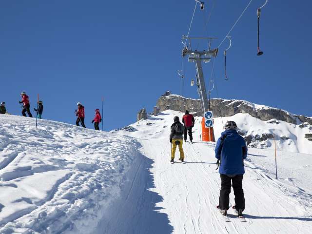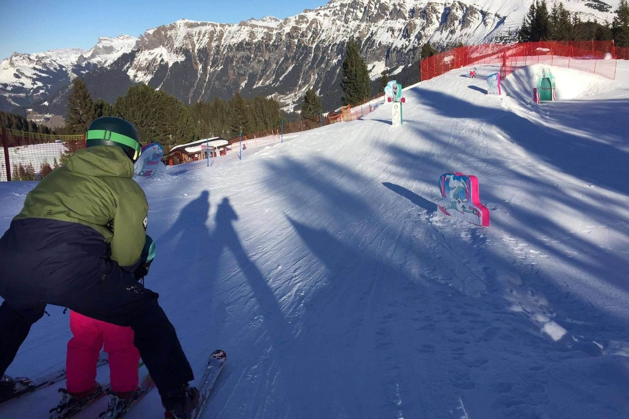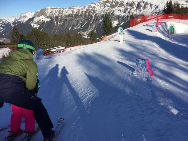 Sur le site, il y a diverses possibilités pour s'entraîner au ski et au snowboard. Sur le téléski à assiettes, tu apprends à skier sur le téléski et tu as la possibilité d'accéder aux pistes arrière (Allmi et Palace-Run).