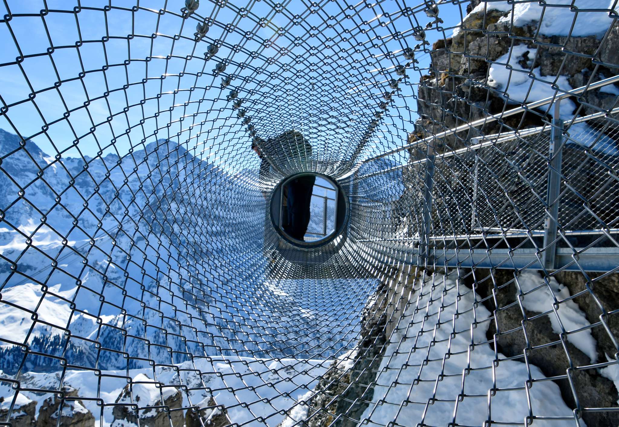 L'entrée du Thrill Walk se trouve du côté de la terrasse panoramique de la station Birg.