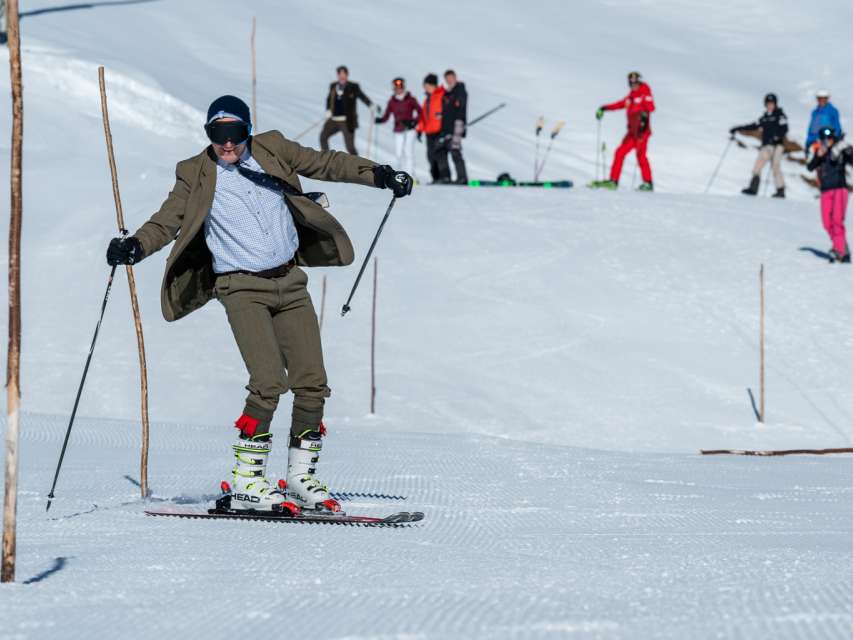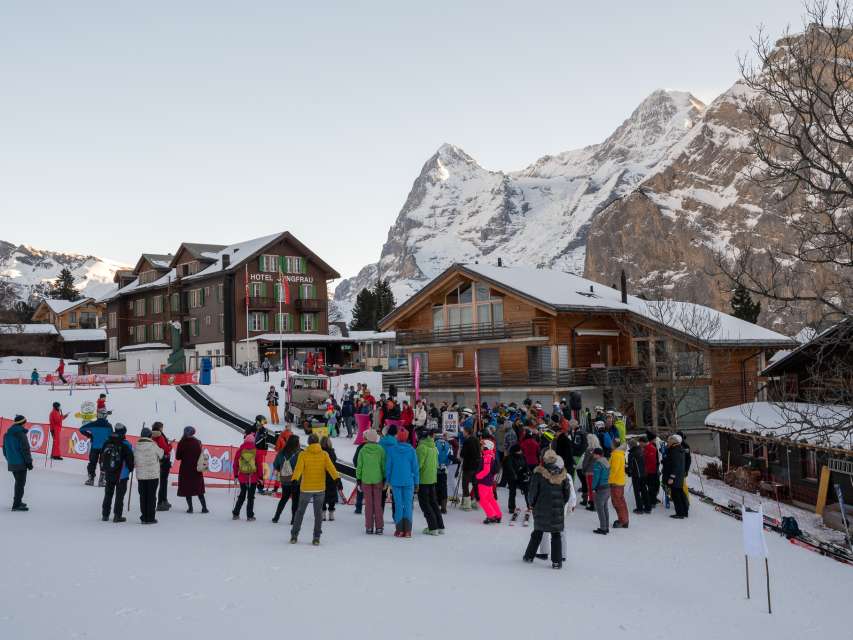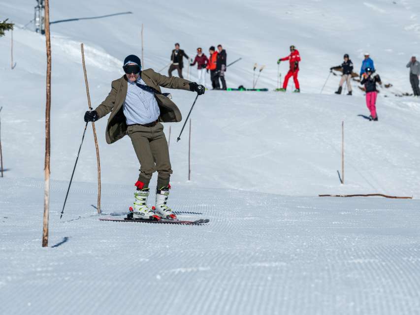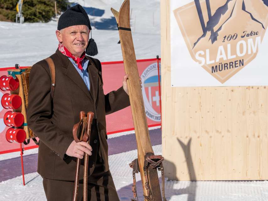 Le lundi 17 décembre 2022, nous avons pu fêter les 100 ans du slalom à Mürren sous le soleil et dans des conditions d'enneigement parfaites. D'anciens skieurs de compétition, comme Erika Hess, ont participé à l'événement. Ceux qui étaient assez courageux ont pu tenter quelques virages autour des poteaux de slalom sur de vieux skis.