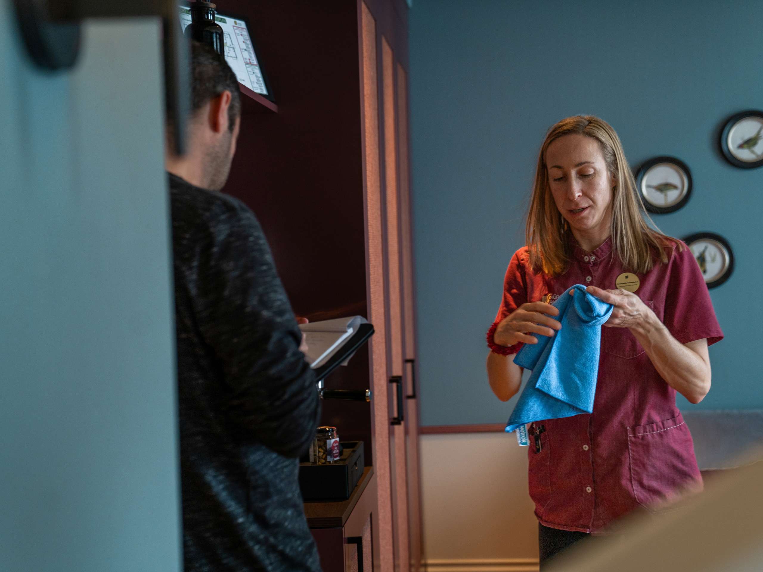 Emanuelle n'est pas seulement responsable du ménage quotidien, mais aussi de la formation des nouvelles employées, qui doivent d'abord assimiler les normes de l'établissement. Comme les postes sont saisonniers, il y a régulièrement des changements. Emanuelle mise sur «l'apprentissage sur le tas», ce qui rend d'autant plus important le suivi individuel.